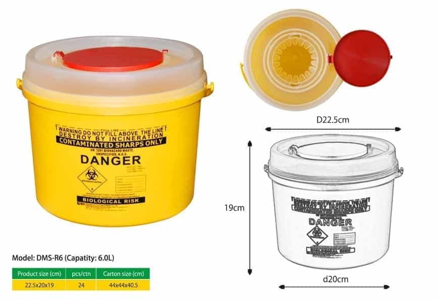 This sharps container is designed in a popular round shape. Its rigid polypropylene construction makes it leak proof and puncture and impact resistant. It is funnel-designed and features a built-in, various indent needle removal cap for easy removal and safe disposal. It has a convenient extra lid design for temporary closure while in use, and permanent closure when full.