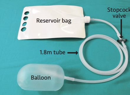 - 1x pre-assembled flexible tube with bag connecter, T-valve, internal tube and balloon