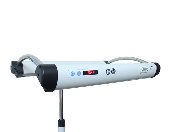 The display includes a bright, ‘across the room’ readable LED display that shows treatment time, total system time counter (lifetime), total intensive mode system time counter (lifetime), and standard/intensive mode indicator. The intuitive control panel has an on/off button and a control button to toggle between normal and intensive mode.